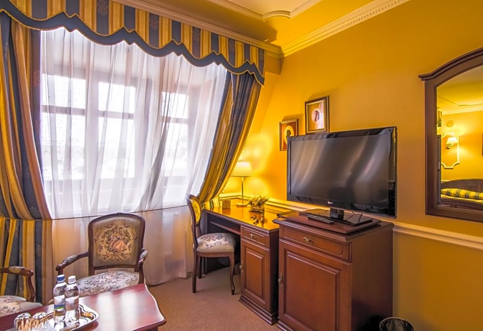 This suite features extra space and a seating area.